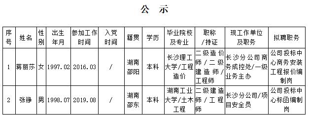 為了加強(qiáng)對(duì)干部選拔工作的監(jiān)督,提高識(shí)別和任用干部的準(zhǔn)確程度,公司按照2025年9月30日發(fā)布的湖南建投四建集團(tuán)有限公司公開招聘公告》的要求,開展了公開招聘工作。現(xiàn)根據(jù)聘結(jié)果,經(jīng)公司研究決定對(duì)蔣麗莎、張錚兩位同志擬任職務(wù)進(jìn)行任前公示。